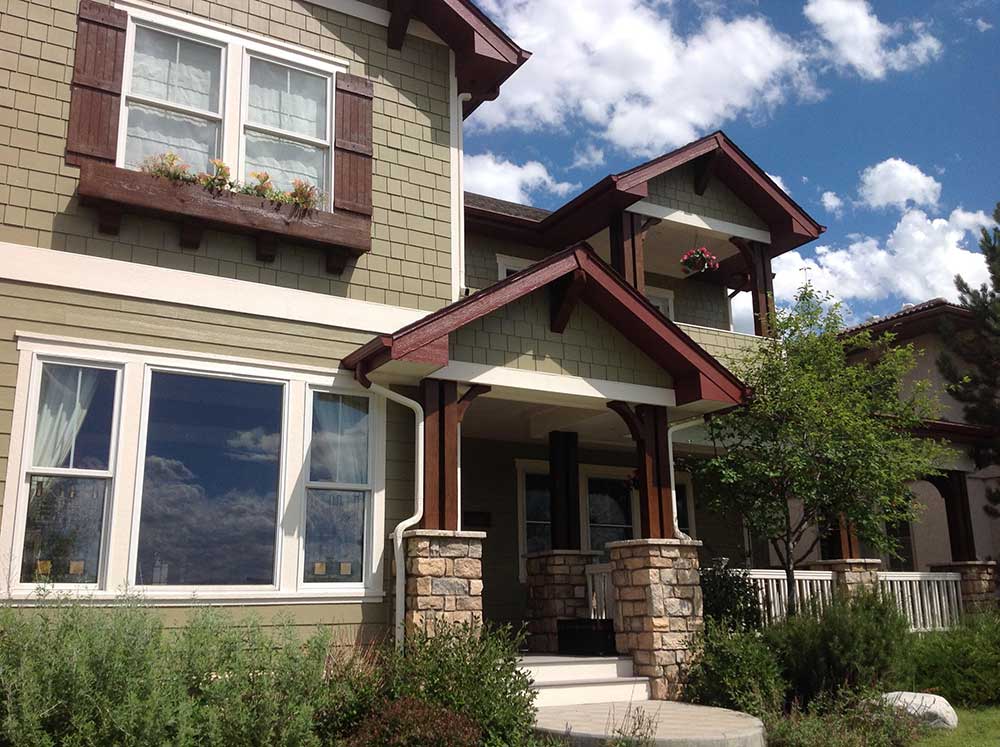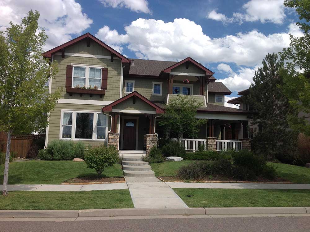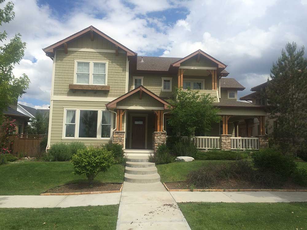 Peak Pro Painting is very proud of this house we painted in Stapleton, Colorado with the help of our team of professional painters for home exteriors. Notice the white trim windows, and darker shutters that bring a nice accent to the light brown color of the house. This family will be happy with their new colors and warranty for years to come. Below the gallery, check out the before pictures and notice the difference!