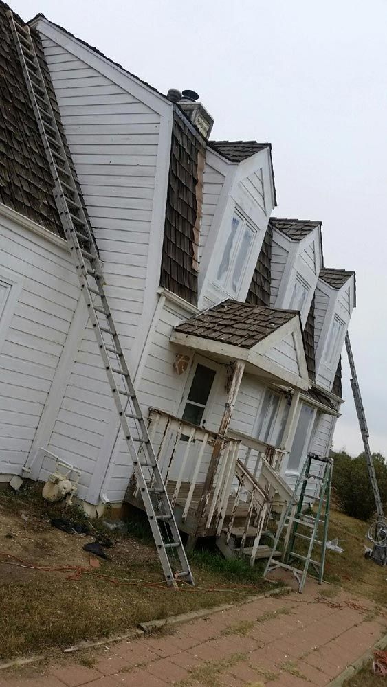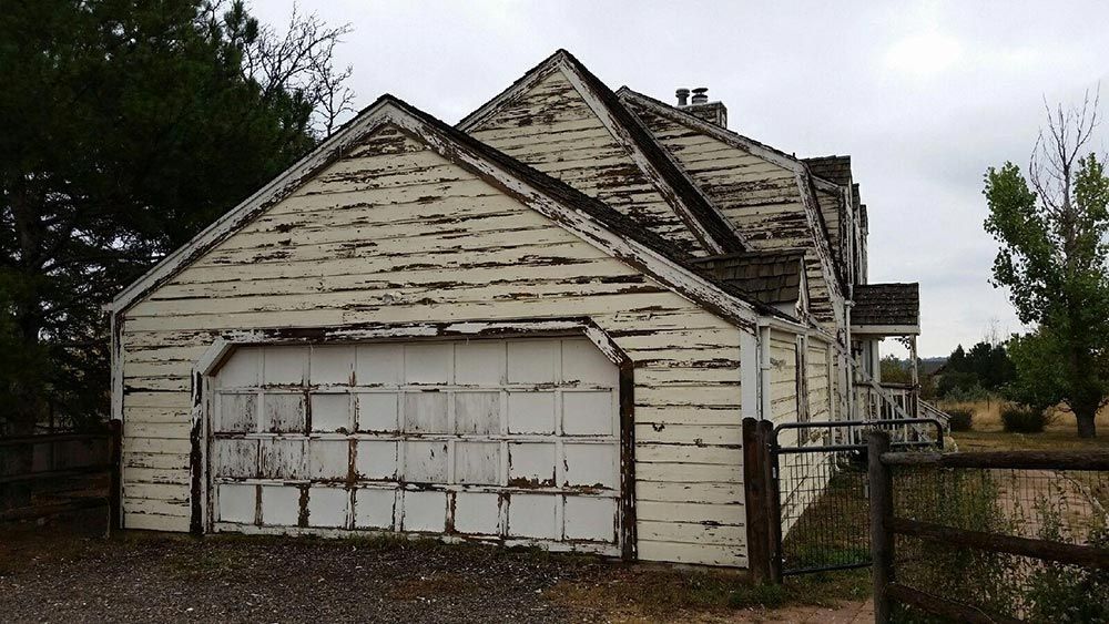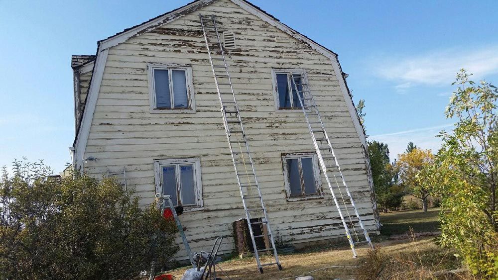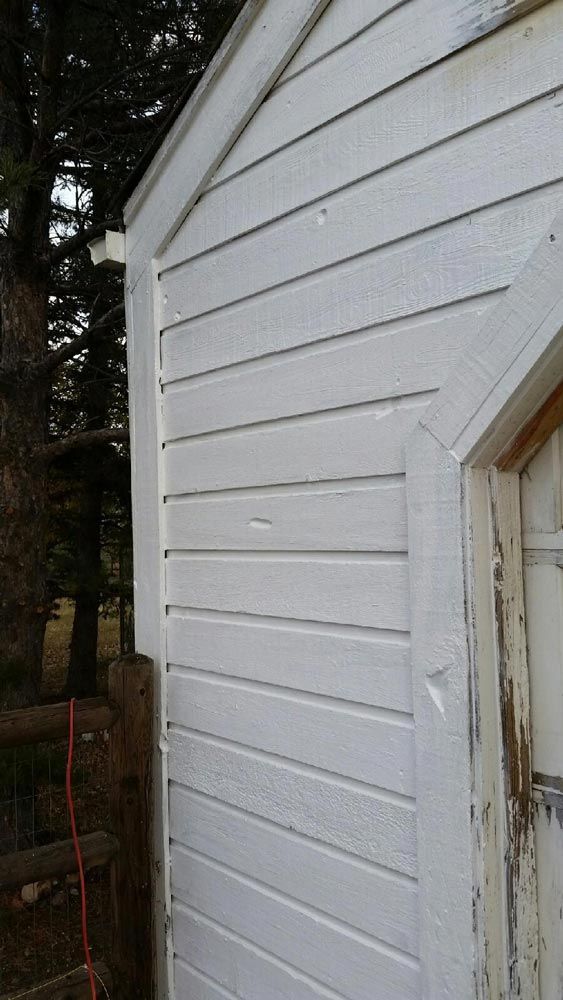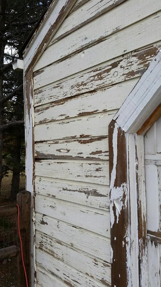 Notice the chipped paint and sun and weather damaged siding. The Peak Pro house painting Denver team got to work, starting with a base layer: